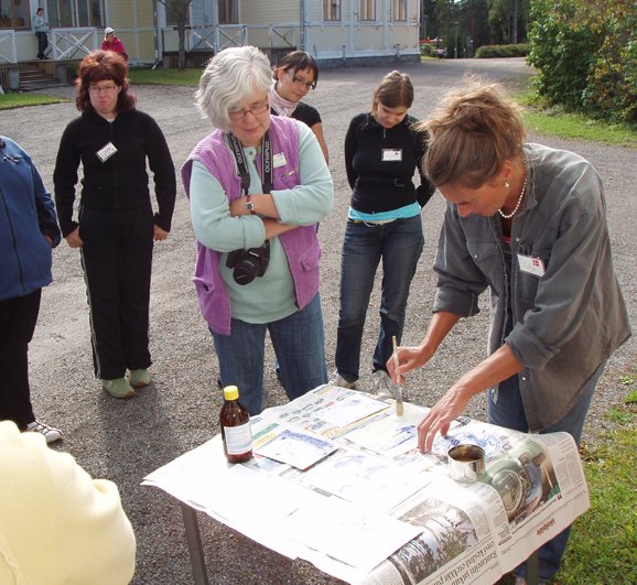 Bifrost elever deltager i workshop i Finland. Lærere og elever fra Bifrost underviser.