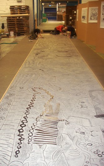 Kenneth Rasmussen udstiller et 2 x 8 m stort linoleumstryk på Kobe Art biennale, – over 200. 000 besøgende